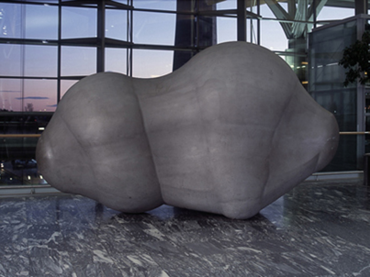 "Seng" er en marmorskulptur som er plassert etter passkontrollen. Marmoren er hentet ut fra et steinbrudd i Fauske.